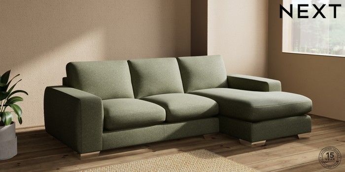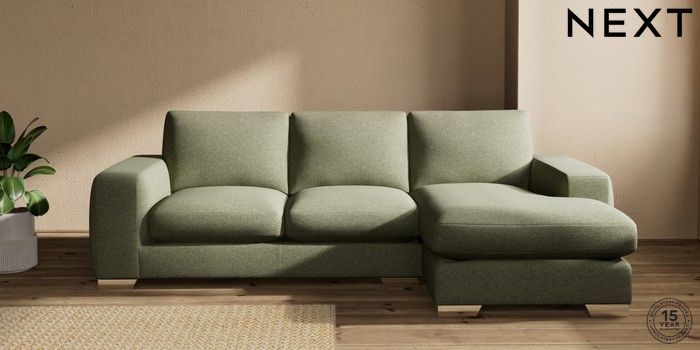7.2.10 Houghton Deep Sit Medium Sofa Chaise - Right Hand Tweedy Chenille Mid Moss Green Large Square Angle - Chrome Metal | Made Click here to use our website with more accessibility support, for example screen readers