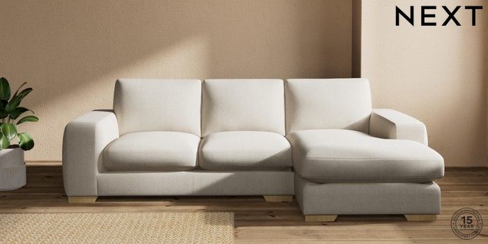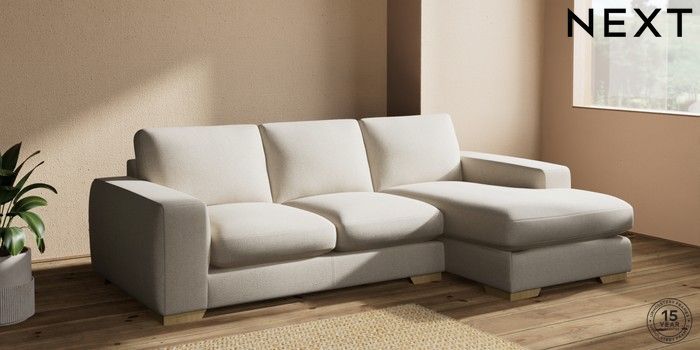 7.2.10 Houghton Deep Sit Medium Sofa Chaise - Right Hand Tweedy Chenille Oyster Large Square Angle - Light | Made Click here to use our website with more accessibility support, for example screen readers