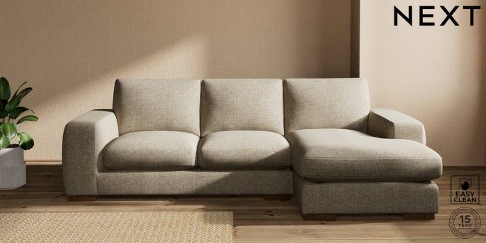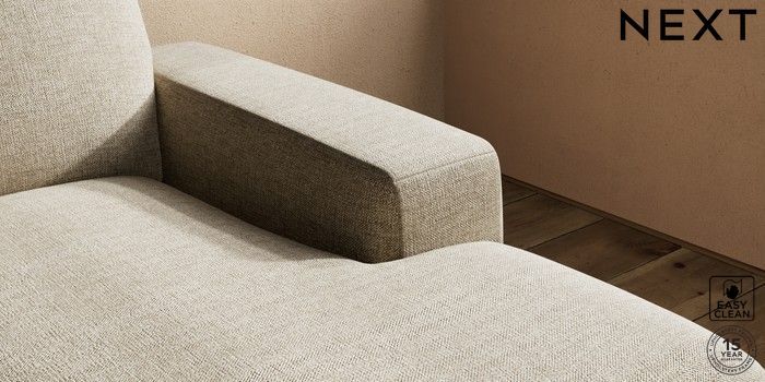 7.2.10 Houghton Deep Sit Medium Sofa Chaise - Right Hand Woven Chenille Easy Clean Mid Natural Large Square Angle - Mid | Made Click here to use our website with more accessibility support, for example screen readers