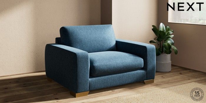 7.2.10 Houghton Deep Sit Snuggle Cotswold Chenille Dark Blue Large Square Angle - Brushed Brass | Made Click here to use our website with more accessibility support, for example screen readers
