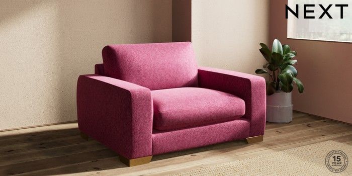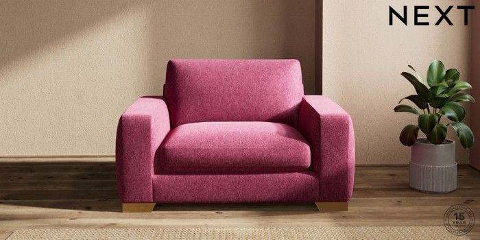 7.2.10 Houghton Deep Sit Snuggle Cotswold Chenille Dark Raspberry Pink Large Square Angle - Brushed Brass | Made Click here to use our website with more accessibility support, for example screen readers