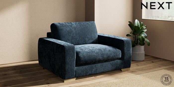 7.2.10 Houghton Deep Sit Snuggle Distressed Velour Midnight Blue Large Square Angle - Light | Made Click here to use our website with more accessibility support, for example screen readers