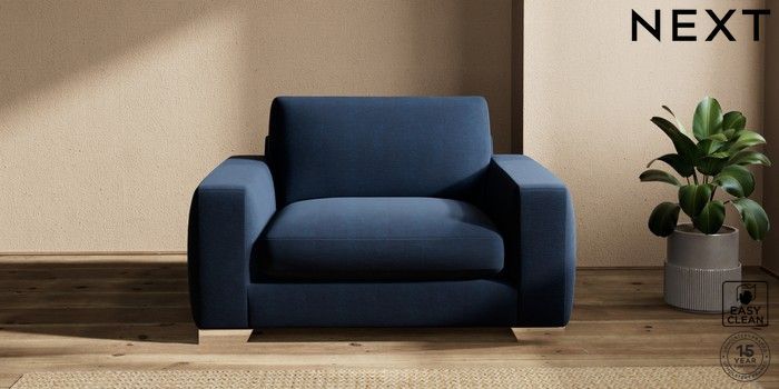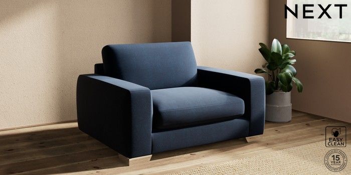 7.2.10 Houghton Deep Sit Snuggle Fine Chenille Easy Clean Dark Navy Blue Large Square Angle - Chrome Metal | Made Click here to use our website with more accessibility support, for example screen readers