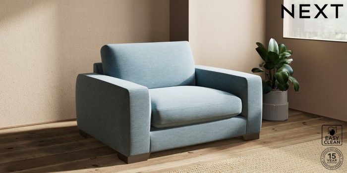 7.2.10 Houghton Deep Sit Snuggle Fine Chenille Easy Clean Mid Blue Large Square Angle - Gunmetal | Made Click here to use our website with more accessibility support, for example screen readers