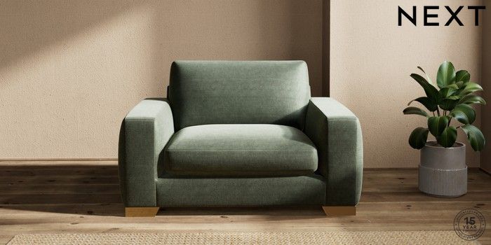 7.2.10 Houghton Deep Sit Snuggle Luxe Chenille Mid Green Large Square Angle - Brushed Brass | Made Click here to use our website with more accessibility support, for example screen readers