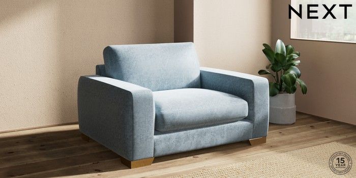 7.2.10 Houghton Deep Sit Snuggle Plush Chenille Light Blue Large Square Angle - Brushed Brass | Made Click here to use our website with more accessibility support, for example screen readers