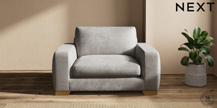 7.2.10 Houghton Deep Sit Snuggle Plush Chenille Light Grey Large Square Angle - Brushed Brass | Made Click here to use our website with more accessibility support, for example screen readers