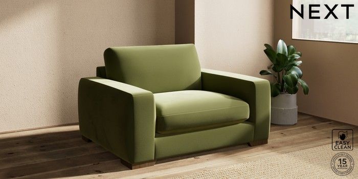 7.2.10 Houghton Deep Sit Snuggle Plush Velvet Easy Clean Mid Olive Green Large Square Angle - Mid | Made Click here to use our website with more accessibility support, for example screen readers
