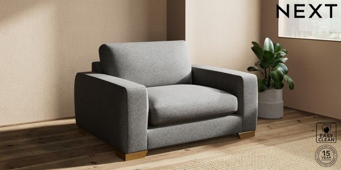 7.2.10 Houghton Deep Sit Snuggle Tweedy Blend Easy Clean Dark Grey Large Square Angle - Brushed Brass | Made Click here to use our website with more accessibility support, for example screen readers