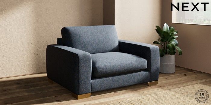 7.2.10 Houghton Deep Sit Snuggle Tweedy Chenille Navy Blue Large Square Angle - Brushed Brass | Made Click here to use our website with more accessibility support, for example screen readers