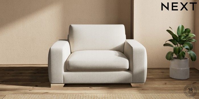 7.2.10 Houghton Deep Sit Snuggle Tweedy Chenille Oyster Large Square Angle - Chrome Metal | Made Click here to use our website with more accessibility support, for example screen readers
