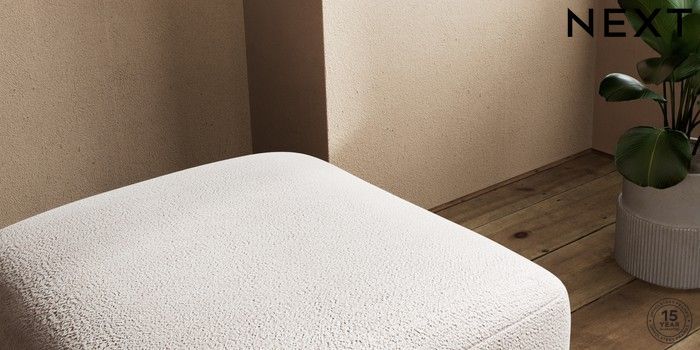 7.2.10 Houghton Deep Sit Storage Footstool Boucle Chenille Light Natural Square Angle - Gunmetal | Made Click here to use our website with more accessibility support, for example screen readers
