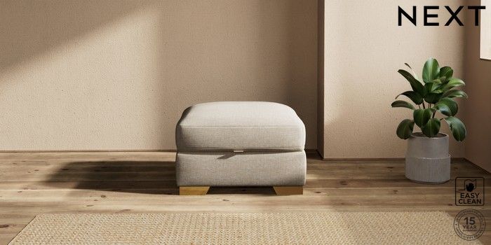 7.2.10 Houghton Deep Sit Storage Footstool Boucle Weave Easy Clean Dark Natural Square Angle - Brushed Brass | Made Click here to use our website with more accessibility support, for example screen readers