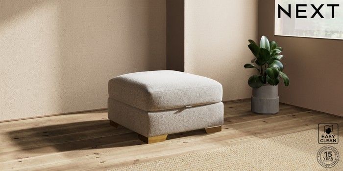 7.2.10 Houghton Deep Sit Storage Footstool Chunky Boucle Easy Clean Dove Square Angle - Brushed Brass | Made Click here to use our website with more accessibility support, for example screen readers