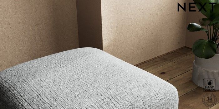 7.2.10 Houghton Deep Sit Storage Footstool Chunky Boucle Easy Clean Mid Grey Square Angle - Brushed Brass | Made Click here to use our website with more accessibility support, for example screen readers