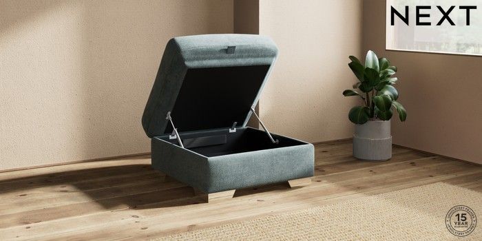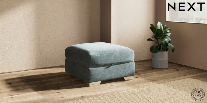 7.2.10 Houghton Deep Sit Storage Footstool Chunky Chenille Light Teal Green Square Angle - Chrome Metal | Made Click here to use our website with more accessibility support, for example screen readers