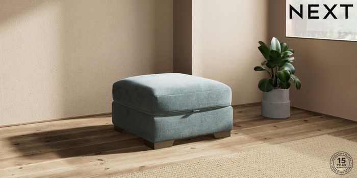 7.2.10 Houghton Deep Sit Storage Footstool Chunky Chenille Light Teal Green Square Angle - Gunmetal | Made Click here to use our website with more accessibility support, for example screen readers