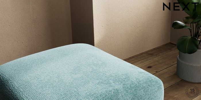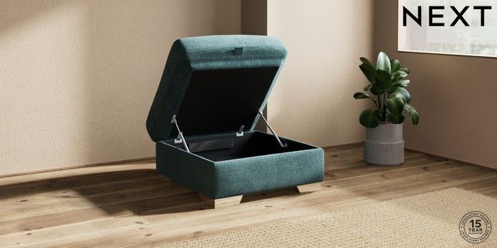 7.2.10 Houghton Deep Sit Storage Footstool Chunky Chenille Mid Teal Green Square Angle - Chrome Metal | Made Click here to use our website with more accessibility support, for example screen readers