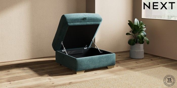 7.2.10 Houghton Deep Sit Storage Footstool Chunky Chenille Mid Teal Green Square Angle - Light | Made Click here to use our website with more accessibility support, for example screen readers