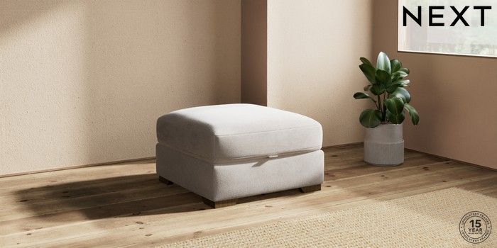7.2.10 Houghton Deep Sit Storage Footstool Chunky Chenille Oyster Square Angle - Mid | Made Click here to use our website with more accessibility support, for example screen readers