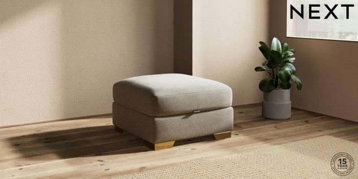 7.2.10 Houghton Deep Sit Storage Footstool Chunky Marl Light Olive Green Square Angle - Brushed Brass | Made Click here to use our website with more accessibility support, for example screen readers