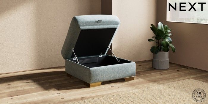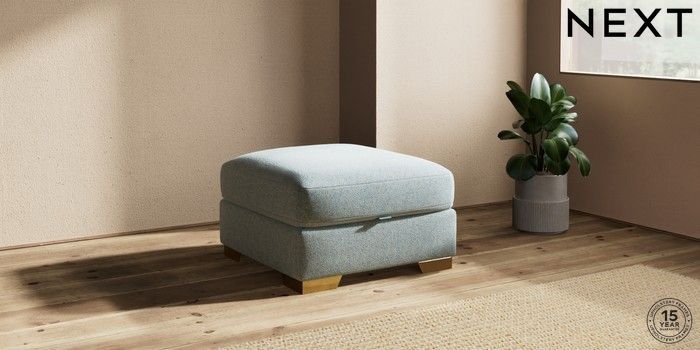 7.2.10 Houghton Deep Sit Storage Footstool Chunky Marl Mid Blue Square Angle - Brushed Brass | Made Click here to use our website with more accessibility support, for example screen readers