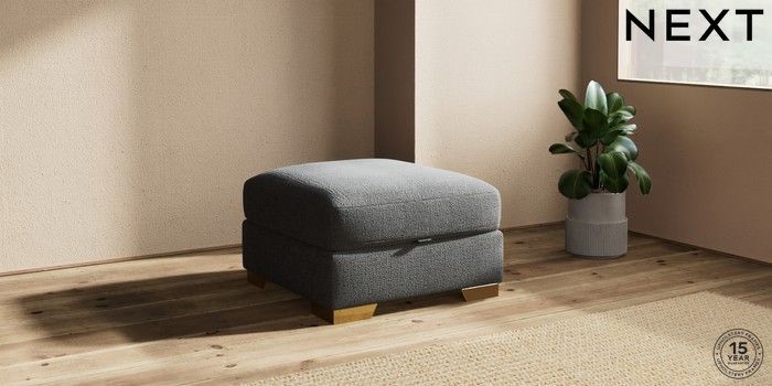 7.2.10 Houghton Deep Sit Storage Footstool Chunky Texture Dark Grey Square Angle - Brushed Brass | Made Click here to use our website with more accessibility support, for example screen readers