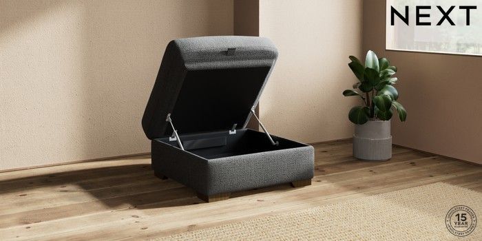 7.2.10 Houghton Deep Sit Storage Footstool Chunky Texture Dark Grey Square Angle - Mid | Made Click here to use our website with more accessibility support, for example screen readers