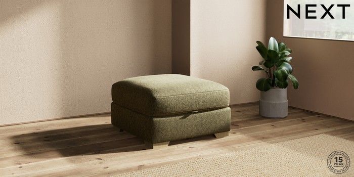 7.2.10 Houghton Deep Sit Storage Footstool Cotswold Chenille Dark Green Square Angle - Light | Made Click here to use our website with more accessibility support, for example screen readers