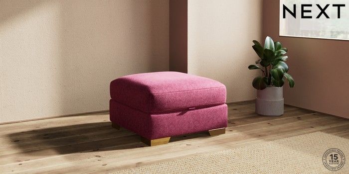 7.2.10 Houghton Deep Sit Storage Footstool Cotswold Chenille Dark Raspberry Pink Square Angle - Brushed Brass | Made Click here to use our website with more accessibility support, for example screen readers