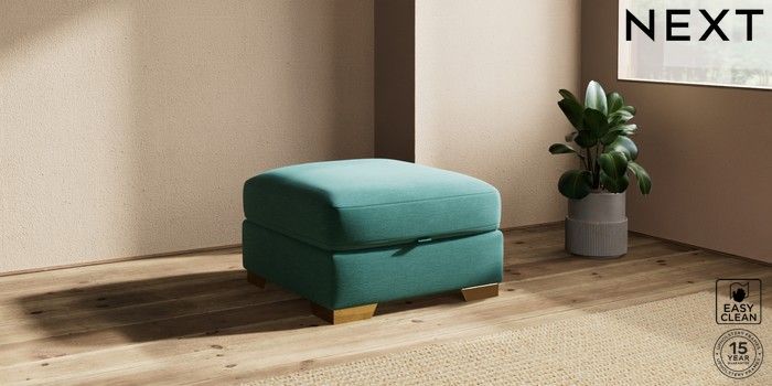 7.2.10 Houghton Deep Sit Storage Footstool Fine Chenille Easy Clean Dark Juniper Green Square Angle - Brushed Brass | Made Click here to use our website with more accessibility support, for example screen readers