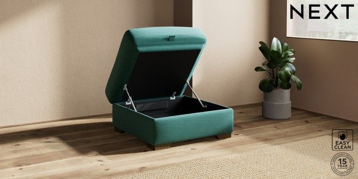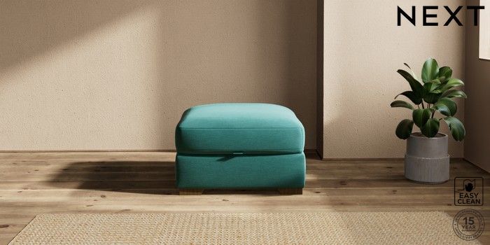 7.2.10 Houghton Deep Sit Storage Footstool Fine Chenille Easy Clean Dark Juniper Green Square Angle - Mid | Made Click here to use our website with more accessibility support, for example screen readers