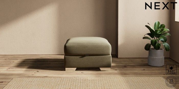 7.2.10 Houghton Deep Sit Storage Footstool Fine Chenille Easy Clean Dark Moss Green Square Angle - Chrome Metal | Made Click here to use our website with more accessibility support, for example screen readers