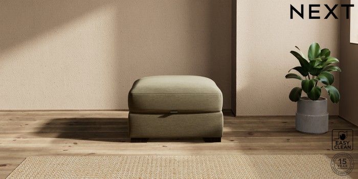 7.2.10 Houghton Deep Sit Storage Footstool Fine Chenille Easy Clean Dark Moss Green Square Angle - Dark | Made Click here to use our website with more accessibility support, for example screen readers