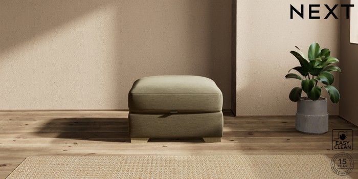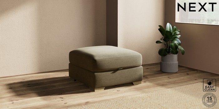 7.2.10 Houghton Deep Sit Storage Footstool Fine Chenille Easy Clean Dark Moss Green Square Angle - Light | Made Click here to use our website with more accessibility support, for example screen readers