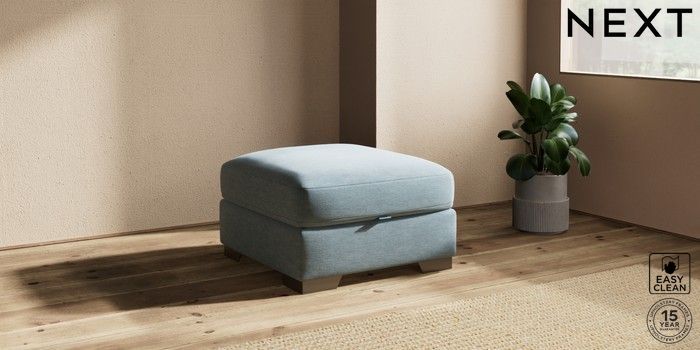 7.2.10 Houghton Deep Sit Storage Footstool Fine Chenille Easy Clean Mid Blue Square Angle - Gunmetal | Made Click here to use our website with more accessibility support, for example screen readers