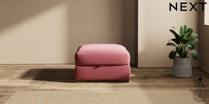7.2.10 Houghton Deep Sit Storage Footstool Fine Chenille Easy Clean Mid Pink Square Angle - Mid | Made Click here to use our website with more accessibility support, for example screen readers
