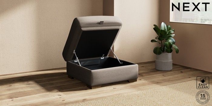 7.2.10 Houghton Deep Sit Storage Footstool Fine Chenille Easy Clean Mid Taupe Brown Square Angle - Mid | Made Click here to use our website with more accessibility support, for example screen readers