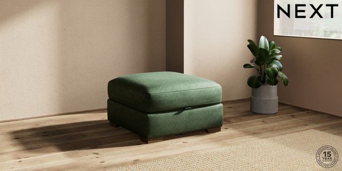7.2.10 Houghton Deep Sit Storage Footstool Luxe Chenille Dark Green Square Angle - Mid | Made Click here to use our website with more accessibility support, for example screen readers