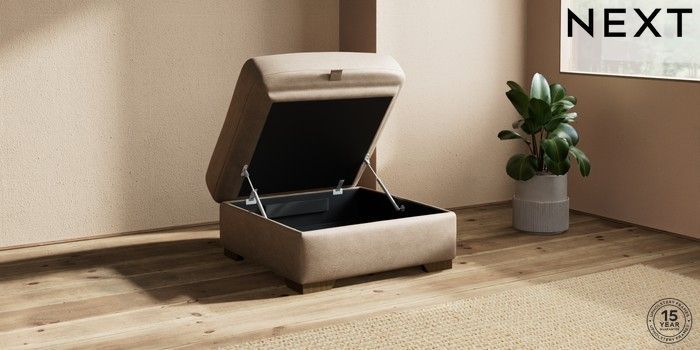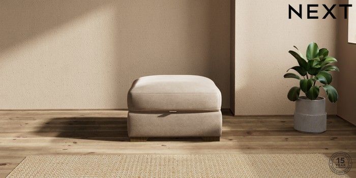 7.2.10 Houghton Deep Sit Storage Footstool Luxe Chenille Mid Camel Beige Square Angle - Mid | Made Click here to use our website with more accessibility support, for example screen readers
