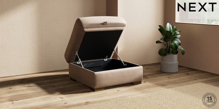 7.2.10 Houghton Deep Sit Storage Footstool Luxe Chenille Mid Natural Square Angle - Mid | Made Click here to use our website with more accessibility support, for example screen readers