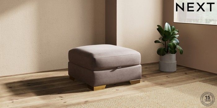 7.2.10 Houghton Deep Sit Storage Footstool Luxe Chenille Mink Brown Square Angle - Brushed Brass | Made Click here to use our website with more accessibility support, for example screen readers