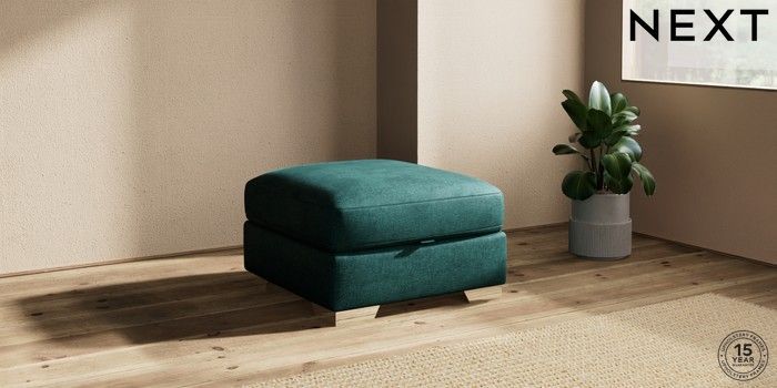 7.2.10 Houghton Deep Sit Storage Footstool Plush Chenille Dark Teal Green Square Angle - Chrome Metal | Made Click here to use our website with more accessibility support, for example screen readers