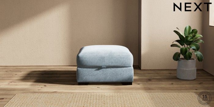 7.2.10 Houghton Deep Sit Storage Footstool Plush Chenille Light Blue Square Angle - Dark | Made Click here to use our website with more accessibility support, for example screen readers