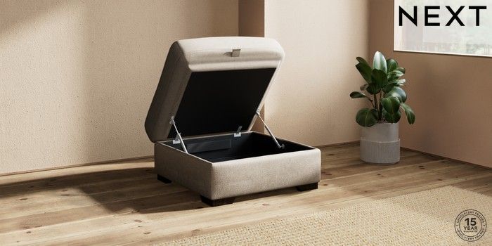 7.2.10 Houghton Deep Sit Storage Footstool Plush Chenille Light Natural Square Angle - Dark | Made Click here to use our website with more accessibility support, for example screen readers