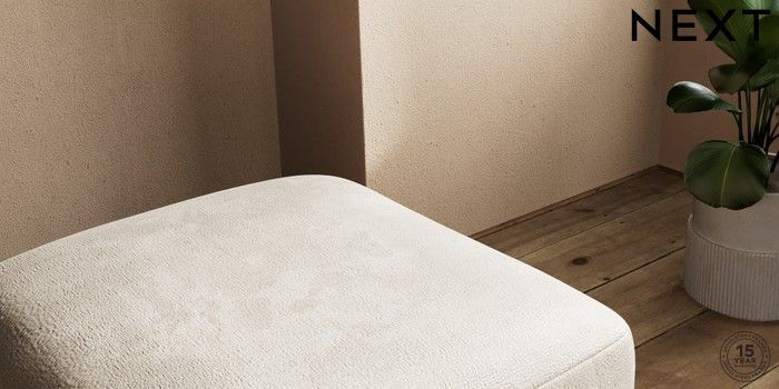 7.2.10 Houghton Deep Sit Storage Footstool Plush Chenille Light Natural Square Angle - Mid | Made Click here to use our website with more accessibility support, for example screen readers