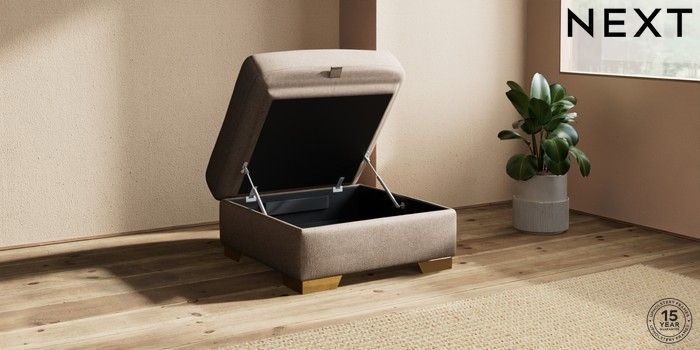 7.2.10 Houghton Deep Sit Storage Footstool Plush Chenille Mid Natural Square Angle - Brushed Brass | Made Click here to use our website with more accessibility support, for example screen readers