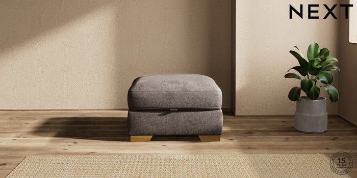 7.2.10 Houghton Deep Sit Storage Footstool Plush Chenille Mink Brown Square Angle - Brushed Brass | Made Click here to use our website with more accessibility support, for example screen readers