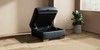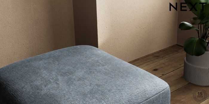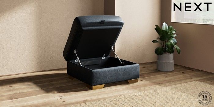 7.2.10 Houghton Deep Sit Storage Footstool Plush Chenille Slate Blue Square Angle - Brushed Brass | Made Click here to use our website with more accessibility support, for example screen readers