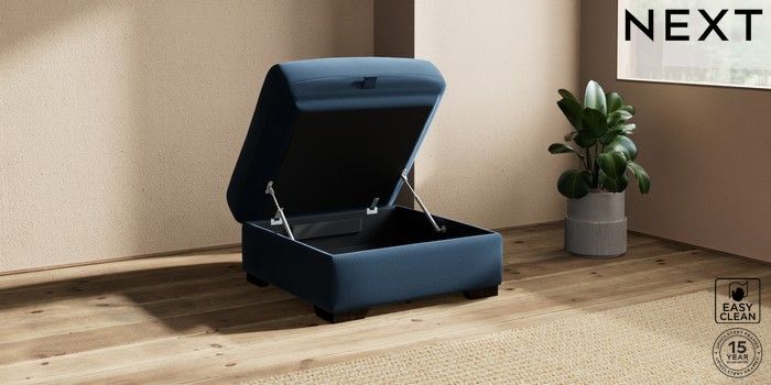7.2.10 Houghton Deep Sit Storage Footstool Plush Velvet Easy Clean Airforce Blue Square Angle - Dark | Made Click here to use our website with more accessibility support, for example screen readers